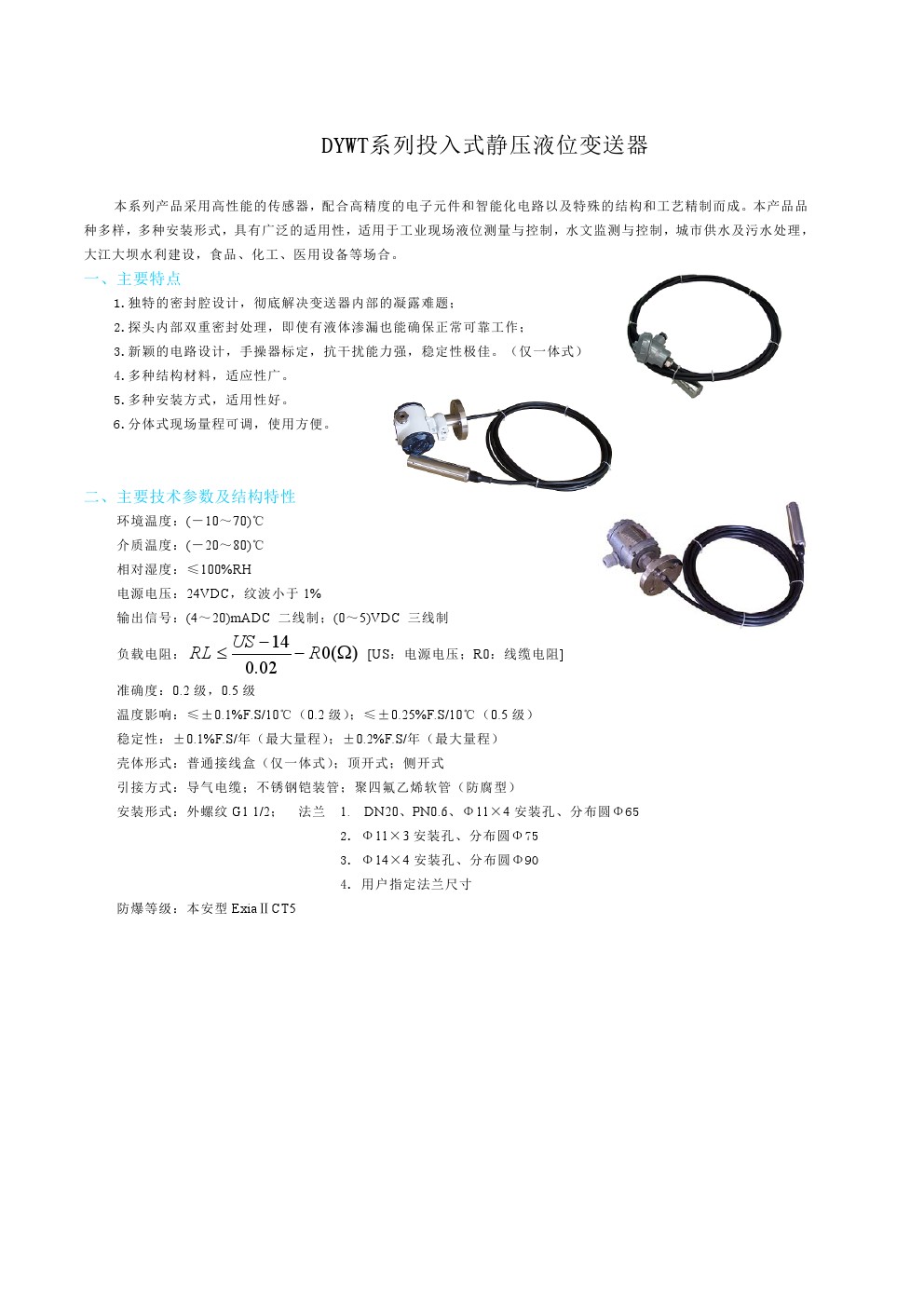 DYWT系列投入式靜壓液位變送器