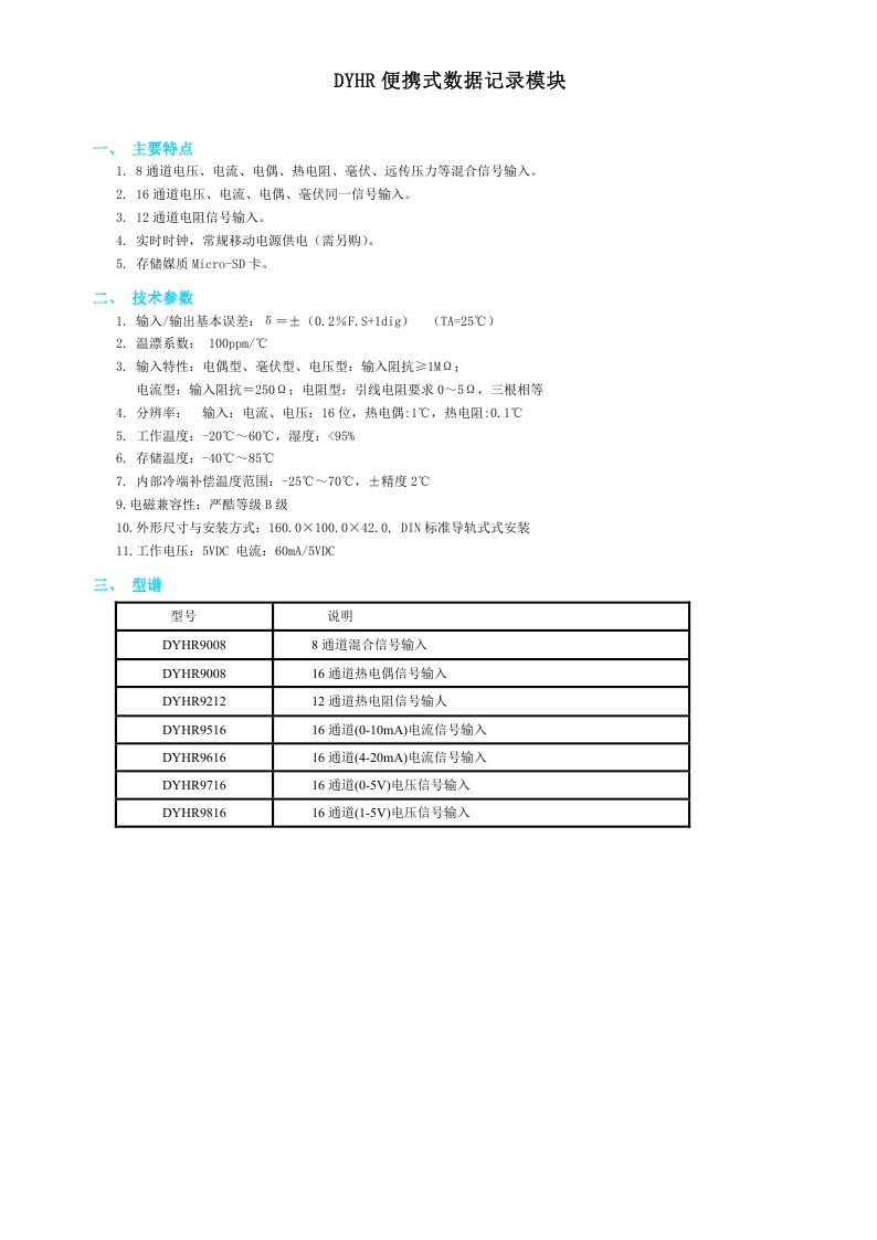 DYHR9008/9116/9212/9516/9616/9716/9816多通道信號輸入便攜式數據記錄模塊