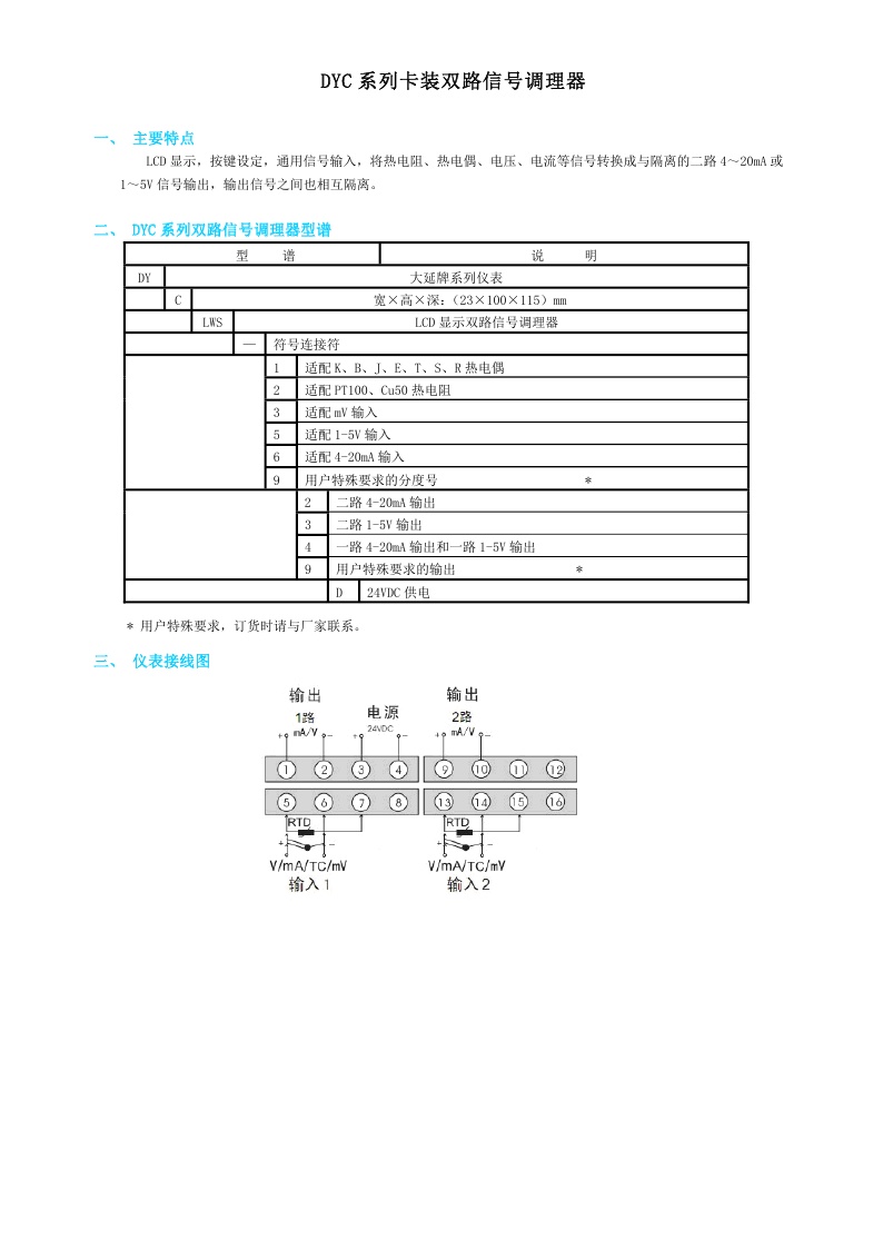 DYC系列卡裝雙路信號調理器