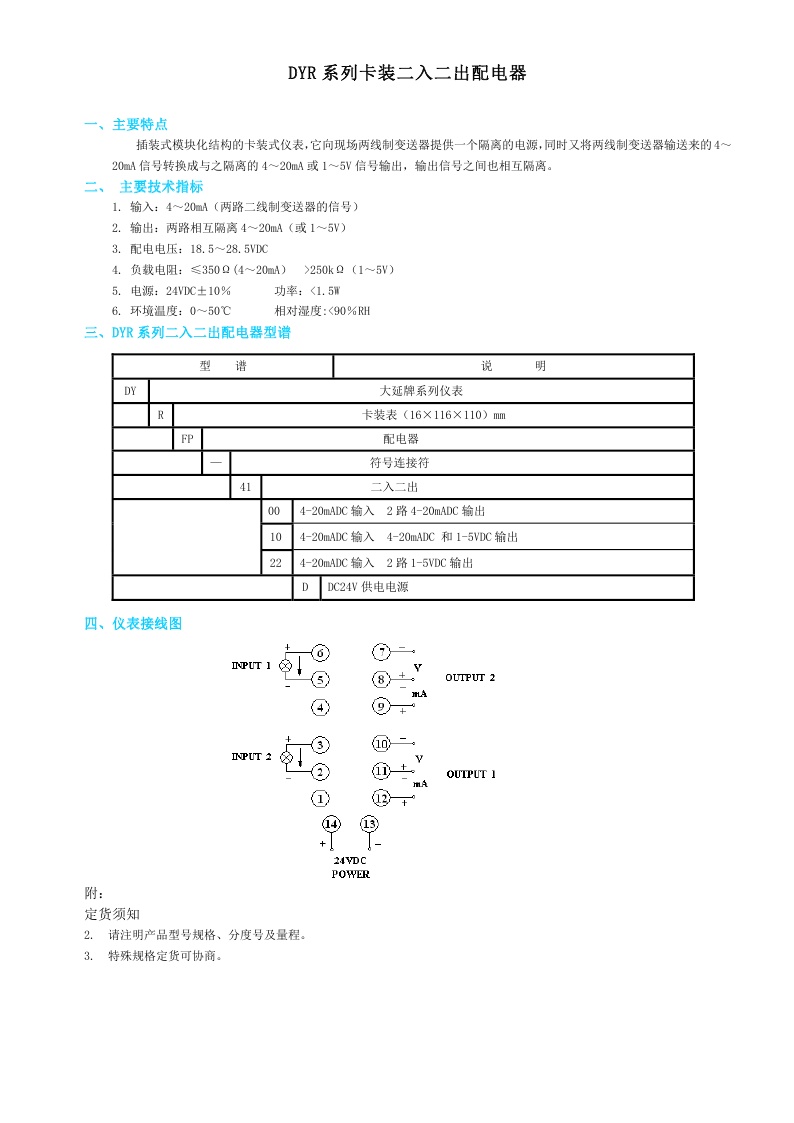DYR系列卡裝一入二出配電器