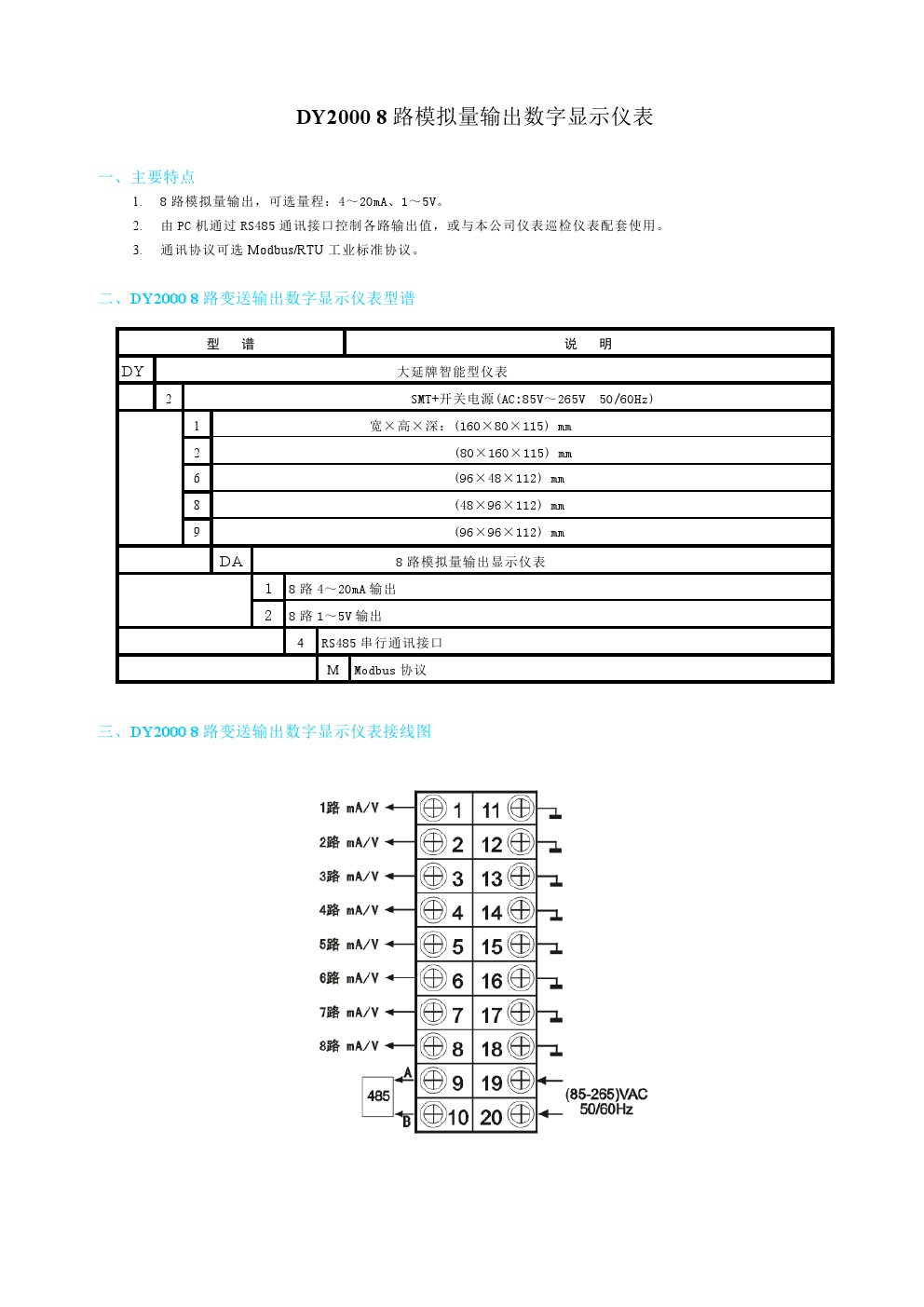 DY2000(DA)8路模擬量輸出數字顯示儀表
