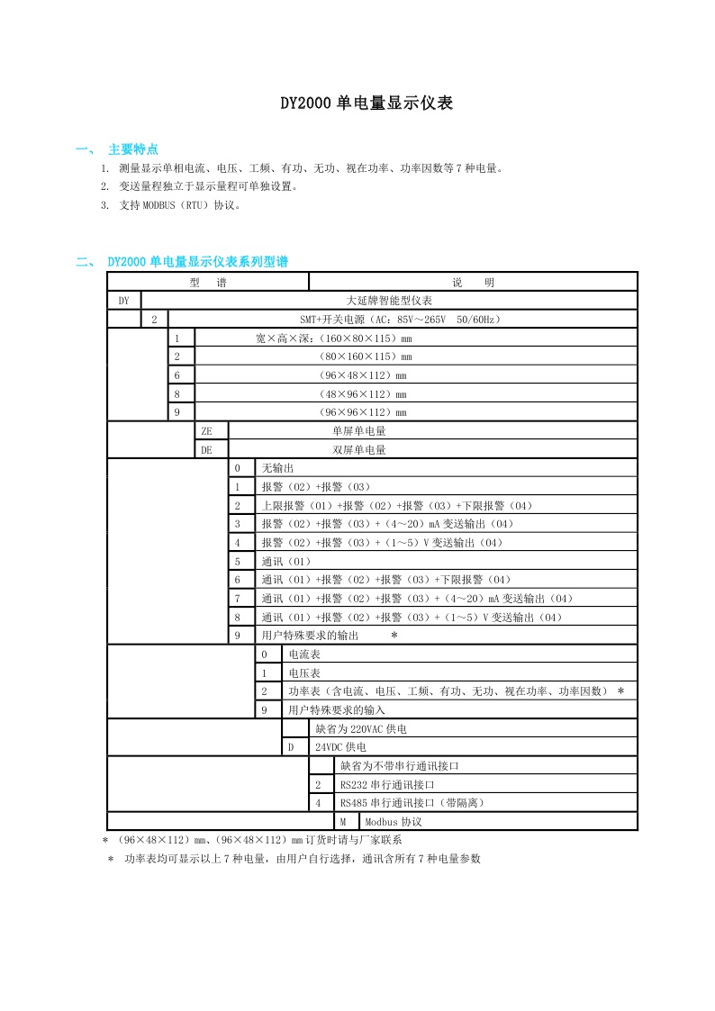 DY2000電量儀表\DYA電量模塊