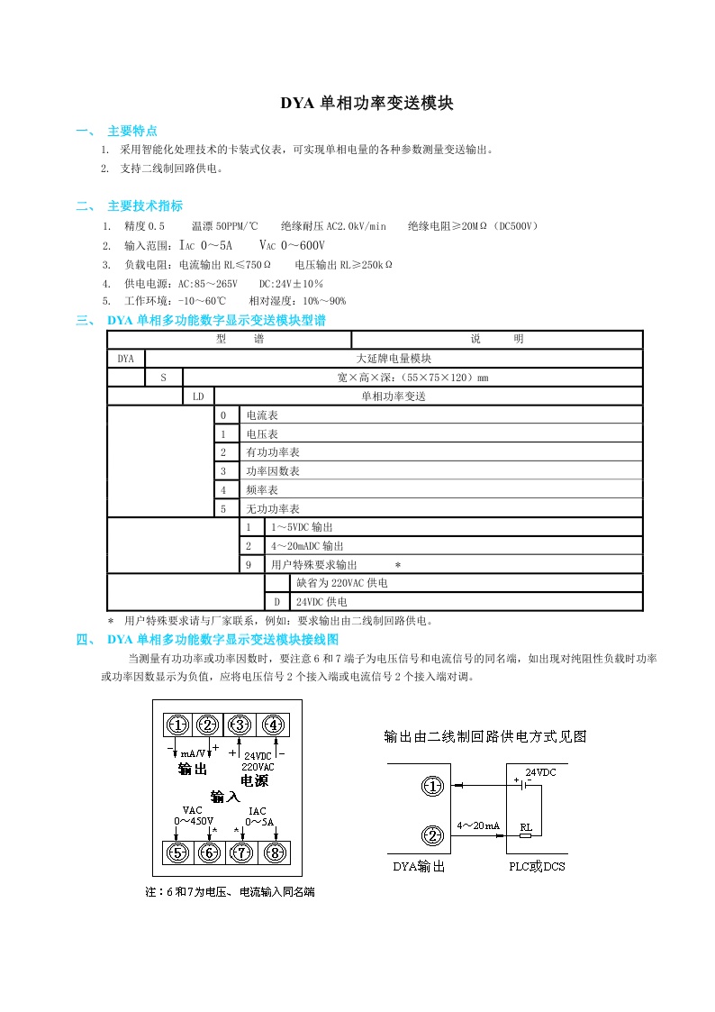 DYA單相功率變送模塊