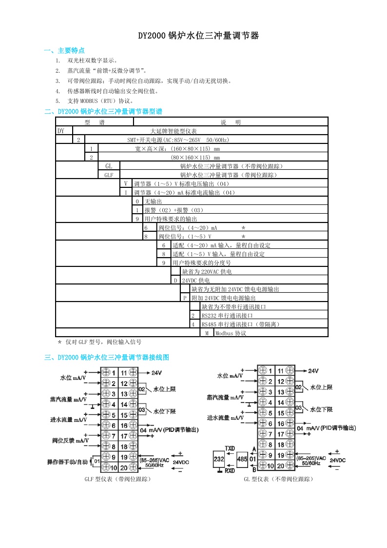 DY2000(GL/GLF)鍋爐水位三沖量調節器