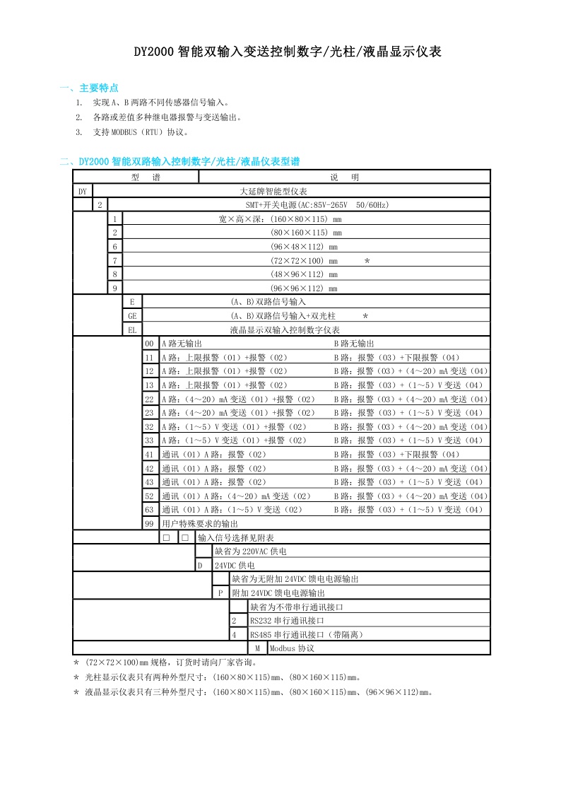 DY2000系列智能儀表