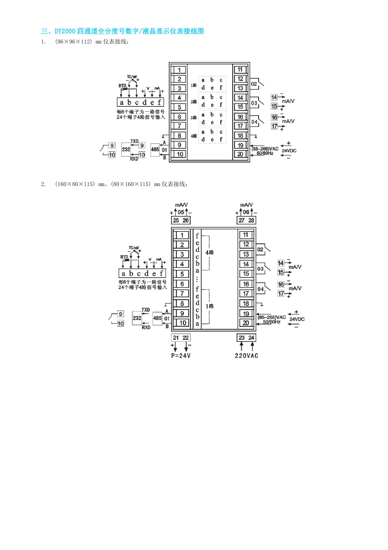 DY2000(FE)四通道全分度號數字/液晶顯示儀表