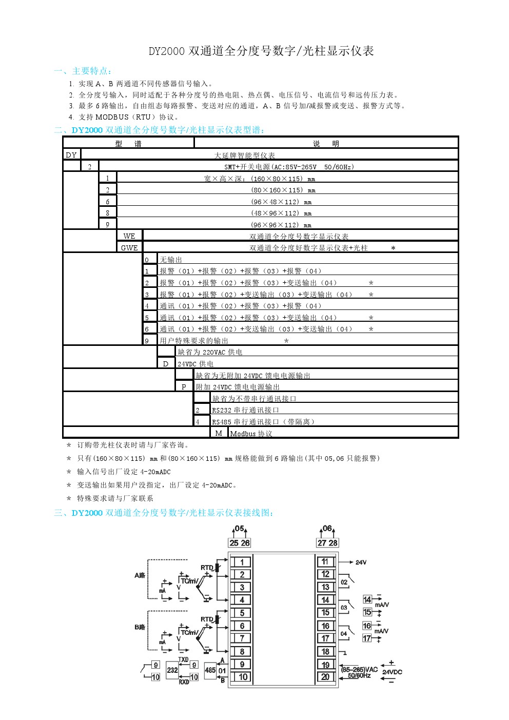 DY2000(WE)雙通道全分度號數字/光柱顯示儀表