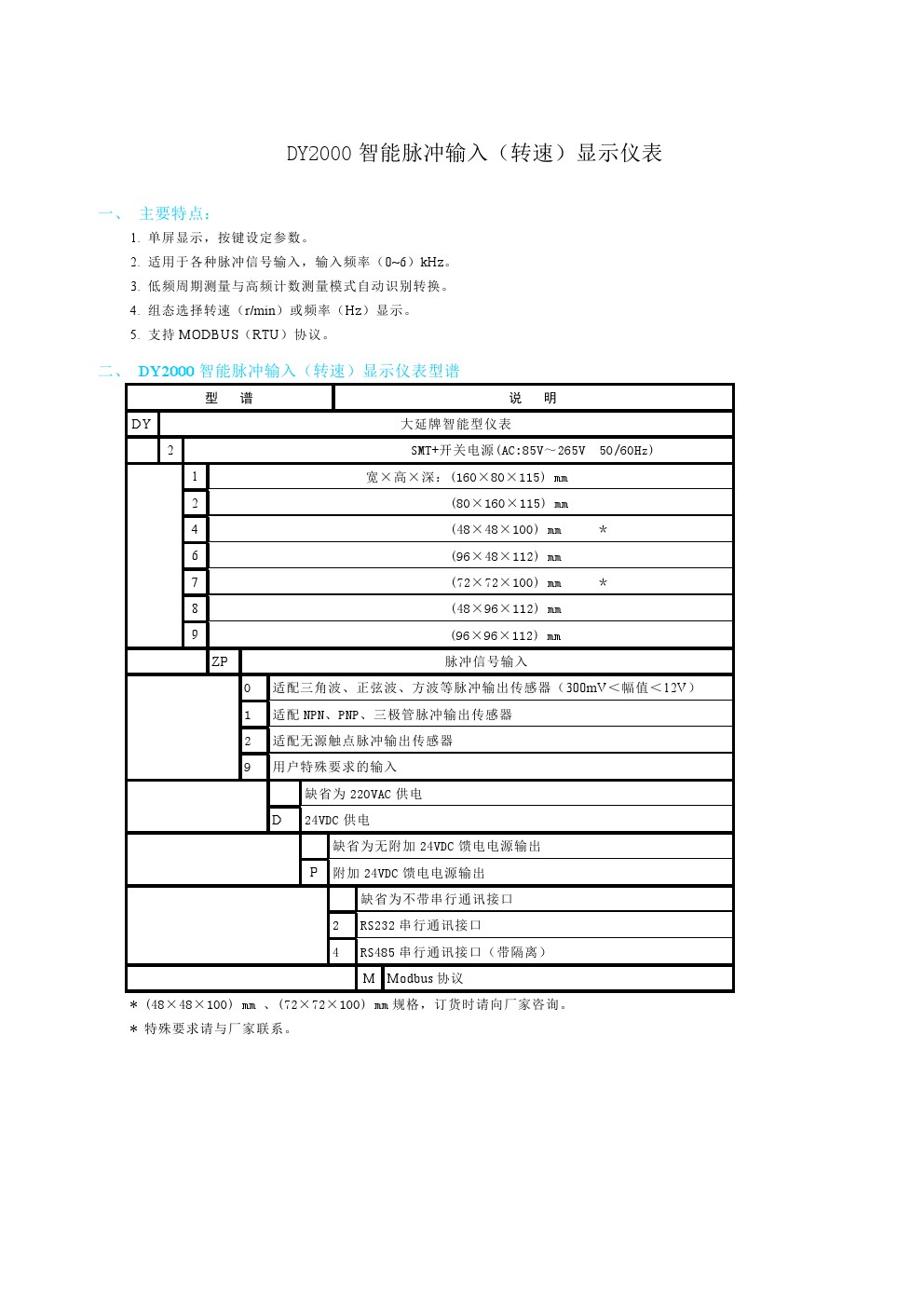 DY2000(ZP)智能單顯脈沖輸入(轉速)顯示儀表
