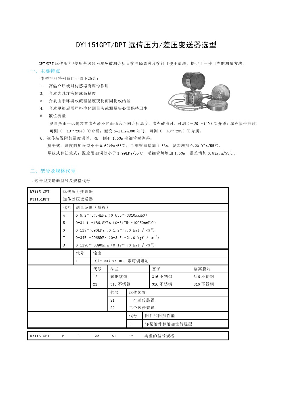 DY1151GPTDPT遠(yuǎn)傳壓力差壓變送器